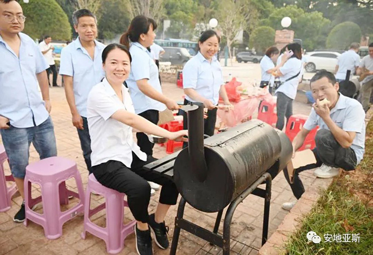 歡聲笑語隨著縷縷炊煙飄蕩在空中,大家烤的烤、扇風(fēng)的扇風(fēng)、刷料的刷料、準(zhǔn)備食材的準(zhǔn)備食材、吃的吃、喝酒的、喝可樂的不忘舉杯對(duì)飲,短短2個(gè)小時(shí),大家相互協(xié)作,相互探討又相互調(diào)侃,整個(gè)場(chǎng)面是如此的和諧、放松而又自在,將所有的不愉快和壓力統(tǒng)統(tǒng)甩到了一邊。
